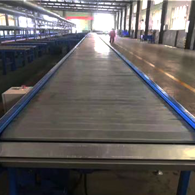 - Suprafață transportoare a liniei cu bandă rulantă cu lanț este plană și netedă, forța de frecare este mică, transportul material este stabil și continuu